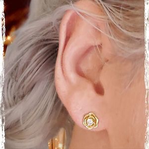 Beautiful gold plated sapphire earrings. Handmade flower design for a very elegant setting.