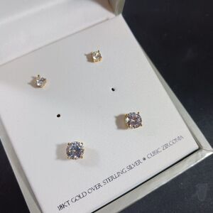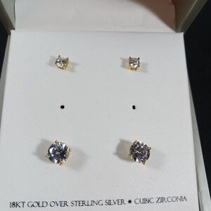 Brand new in box never been used. Please scroll picture for more details. 18K Gold Over Silver Sterling Earring 2pairs Cubic Zirconia. Pet and smoke free home.