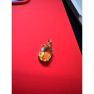 18K Gold Pendant Citrine Gemstone 10 X 15 MM Necklace 2.46 Gr
