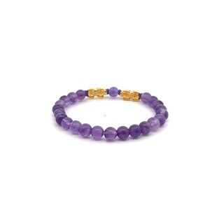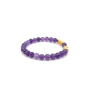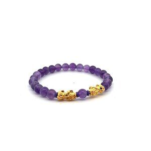 18K Gold Pixiu Double Piyao Bracelet Gemstones Amethyst February Birthstone 6mm