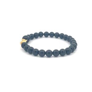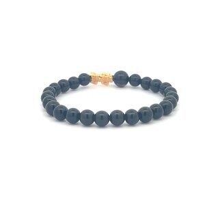 18K Gold Pixiu Piyao Bracelet Gemstones Onyx 6mm Elastic Bracelet Letter V