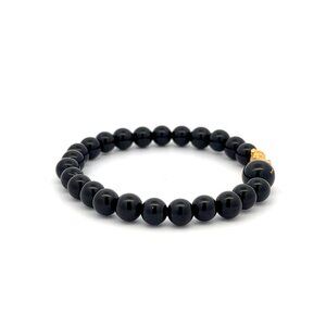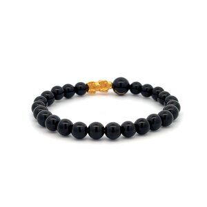 18K Gold Pixiu Piyao Bracelet Gemstones Onyx 6mm Elastic Bracelet Letter Y