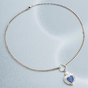 🆕️18K Gold Plated 316L Stainless Steel Blue Crystal Heart Pendant Necklace 💙
