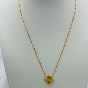 This elegant 18k gold-plated Lucky Alhambra Clover necklace Set is a must-have addition to any jewelry collection. The pendant, inspired by the iconic Alhambra design, features a beautifully detailed four-leaf clover symbolizing luck and good fortune. The delicate chain is lightweight yet durable, perfect for everyday wear or as a statement piece for special occasions.