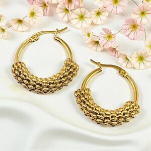 Shine bright with these luxurious 18K gold plated stainless steel hoop earrings! Featuring a unique beaded texture, these hoops measure 1.2" and are crafted from durable, hypoallergenic stainless steel, ensuring long-lasting wear. Perfect for daily elegance or a night out! They come beautifully packaged in a jewelry gift box with premium packaging, making them an ideal gift for yourself or a loved one. π
