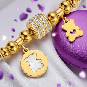 Add a playful yet elegant touch to your style with this stunning 18K gold plated stainless steel bracelet! Featuring adorable bear charms π» and a dazzling rhinestone centerpiece, this beaded bracelet is perfect for everyday wear or as a unique gift π. Its adjustable design ensures a perfect fit, while the premium quality materials guarantee long-lasting shine β¨. Embrace a mix of fun and sophistication with this charming accessory!