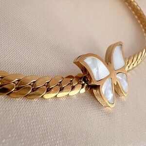 18K Gold Plated mother of pearl Bracelet Butterfly Herringbone (Snake) Stainless Steel Womens