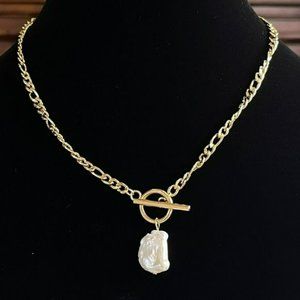 18K Gold Plated Chain Link Baroque Freshwater Pearl Pendant Necklace 17..5in