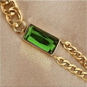 18K Gold Plated Cuban chain Necklace SET Stainless Steel green emerald NEW