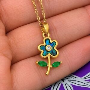 Add a touch of nature-inspired elegance with this dainty 18K gold plated stainless steel necklace. Featuring a charming flower pendant adorned with a stunning abalone shell inlay and a sparkling zircon center, this piece is perfect for everyday wear or special occasions. The delicate green crystal leaves complete the floral design, creating a timeless accessory that will catch the light and turn heads. Durable, tarnish-resistant, and hypoallergenic—this necklace is as practical as it is beautiful. 🌸✨