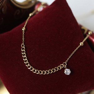 18K Gold Plated Diamond Drop Link Chain Necklace