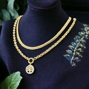 ποΈ18K Gold Plated Double Chain Necklace w/ Rhinestone Tree of Life Pendant π³