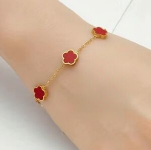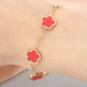 18K Gold Plated Five Petal Flower Bracelet in Red Enamel