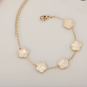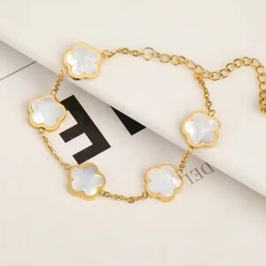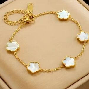 18K Gold Plated Five Petal Flower Bracelet Elegant Five Flower Shell Bracelet Jewelry Gifts