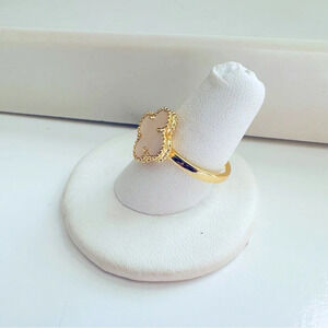 18K Gold Plated Four Leaf Clover Mother Of Pearl Adjustable Ring
