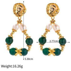 18K Gold Plated Green Agate Drop Earrings