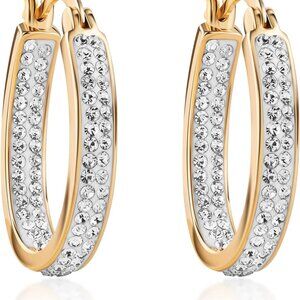 18K Gold Plated Hoop Earrings with Cubic Zirconia for Women