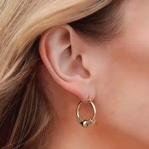 Elevate your everyday style with these stunning 18K gold plated 316L stainless steel hoop earrings 🥰. Featuring a sleek design adorned with textured accents, these hoops bring a perfect blend of modern elegance and timeless charm to any outfit. Hypoallergenic and durable, they are ideal for daily wear or special occasions. Make a statement with these versatile and stylish earrings! 🌟