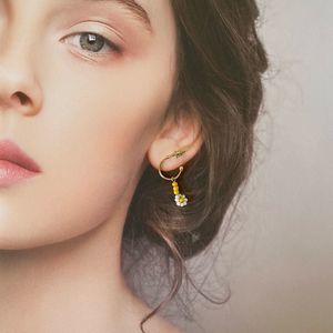 18K Gold Plated Hoops Japanese Seed Beads Daisy Drop Earrings