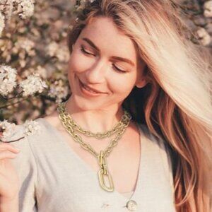18K Gold Plated Layered Chunky Paperclip Toggle Link Necklace Set NWT