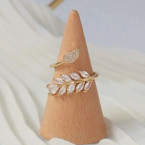 💎 18K Gold Plated Lovely Leaf Design Open Wedding Ring, FB16FA1068