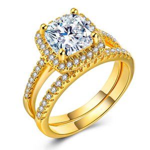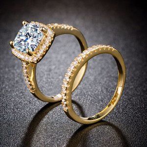 18K Gold Plated Luxury Princess Cut 3A CZ Wedding Couple Ring, FB16FA1029-9
