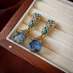18K Gold Plated Multicolor Rhinestone Dangle Earring NWT