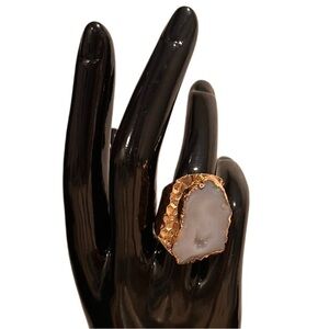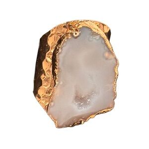 18K Gold Plated Natural Stone Irregular Geode Crystal AdjustableRing “Listing D”