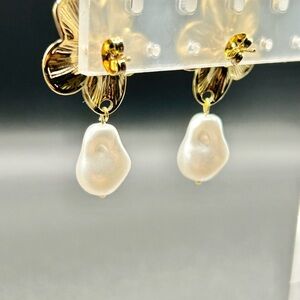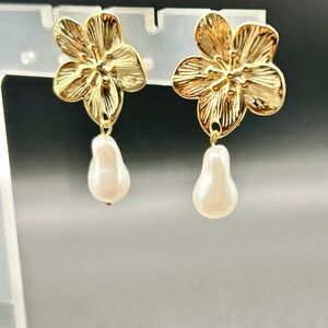 18K gold plated, stainless steel, flower detail, pearls, pierced ears