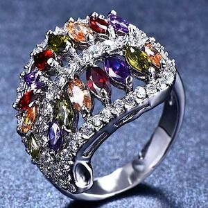 Elegant 18k GP Multi color rainbow cubic zircon stone band ring.