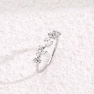 18K Gold Plated Ring Open Adjustable Ring Cubic Zirconia Leaf Ring for Women Dai