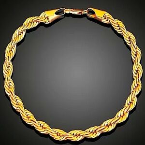 18K Gold Plated Rope Chain Link Necklace Matching Bracelet Set