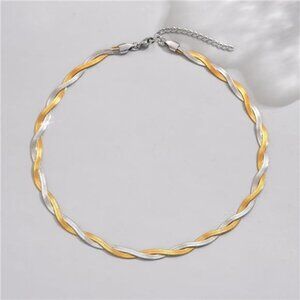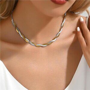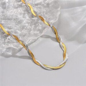 18K Gold Plated Snake Chain Herringbone Necklace Layered Double Chain Choker