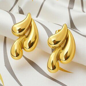 Elevate your style with these stunning 18K gold plated stainless steel drop earrings! Featuring a unique teardrop design, these earrings are perfect for adding a touch of elegance and sophistication to any outfit. Crafted with high-quality stainless steel, they are both durable and hypoallergenic, making them ideal for everyday wear.