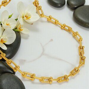 Elevate your style with this trendy 18K gold plated stainless steel chain necklace! 💛 Featuring a sleek paperclip design with delicate ball accents, this modern and minimalist necklace is perfect for layering or wearing solo. Crafted from durable, tarnish-resistant stainless steel, this piece ensures long-lasting shine and elegance.