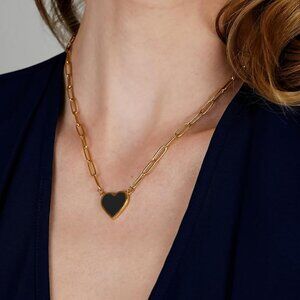- Share your affection with this elegant necklace featuring a gold heart pendant. Its stylish and versatile design complements any outfit beautifully.