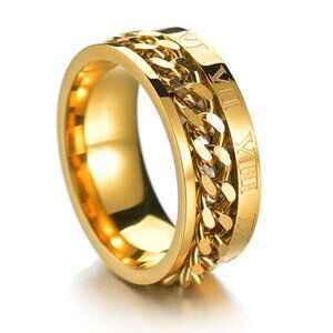 18K Gold Plated Stainless Steel Roman Numeral Spinning Cuban Link Ring, Unisex