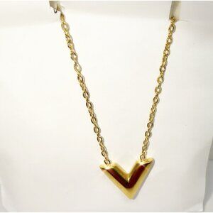 18K Gold Plated Stainless Steel V Pendant Necklace Womens