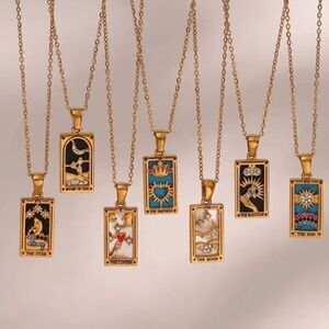18K Gold Plated Stainless Steel Zircon Crystal "Knight of Cups" Tarot Necklace