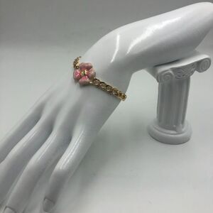 18K Gold Plated Women's Bracelet with Pink Flower Hypoallergenic Waterproof