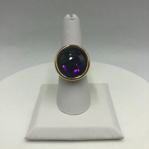 18K Gold Plated Women's Heavy Bling Sparkling Statement Ring Purple Size 8