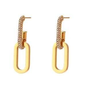 18K Gold Plated Zircon Chain Drop Earrings Stainless Steel