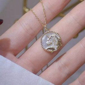 18K Gold Plated Zircon Unicorn Shell Pendant Necklace 17in