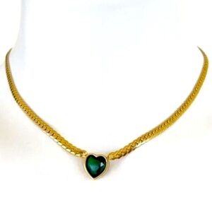 18K Gold Plated emerald green heart necklace snake stainless steel women jewelry