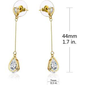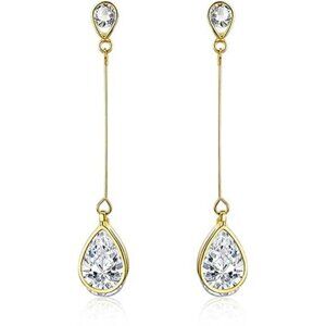 *18K Gold Plated Glamour: These drop earrings feature 2 sparkling teardrop cubic zirconia stones, adding a touch of elegance to both formal and casual occasions
