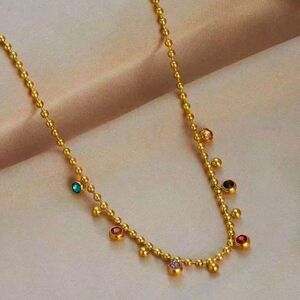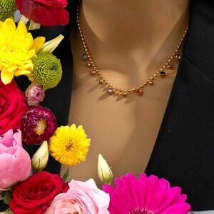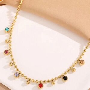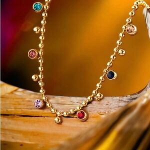 18K Gold Plated Multicolor Rhinestones Beaded Necklace
