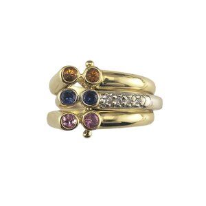 18K Gold Sapphire and Diamond 3 Band Stacking Ring Set Size 7 #19494