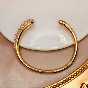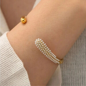 18K Gold- Stainless Steel - Pearls - Teardrop Design Open Cuff Bracelet