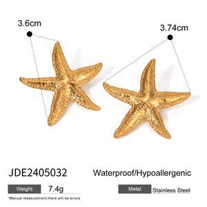 18K Gold Stainless Steel Starfish Shell Stud Earrings Coastal Jewelry
