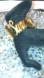 This bold bracelet is one of a kind. It is made of stainless steel plated with 18K Gold.